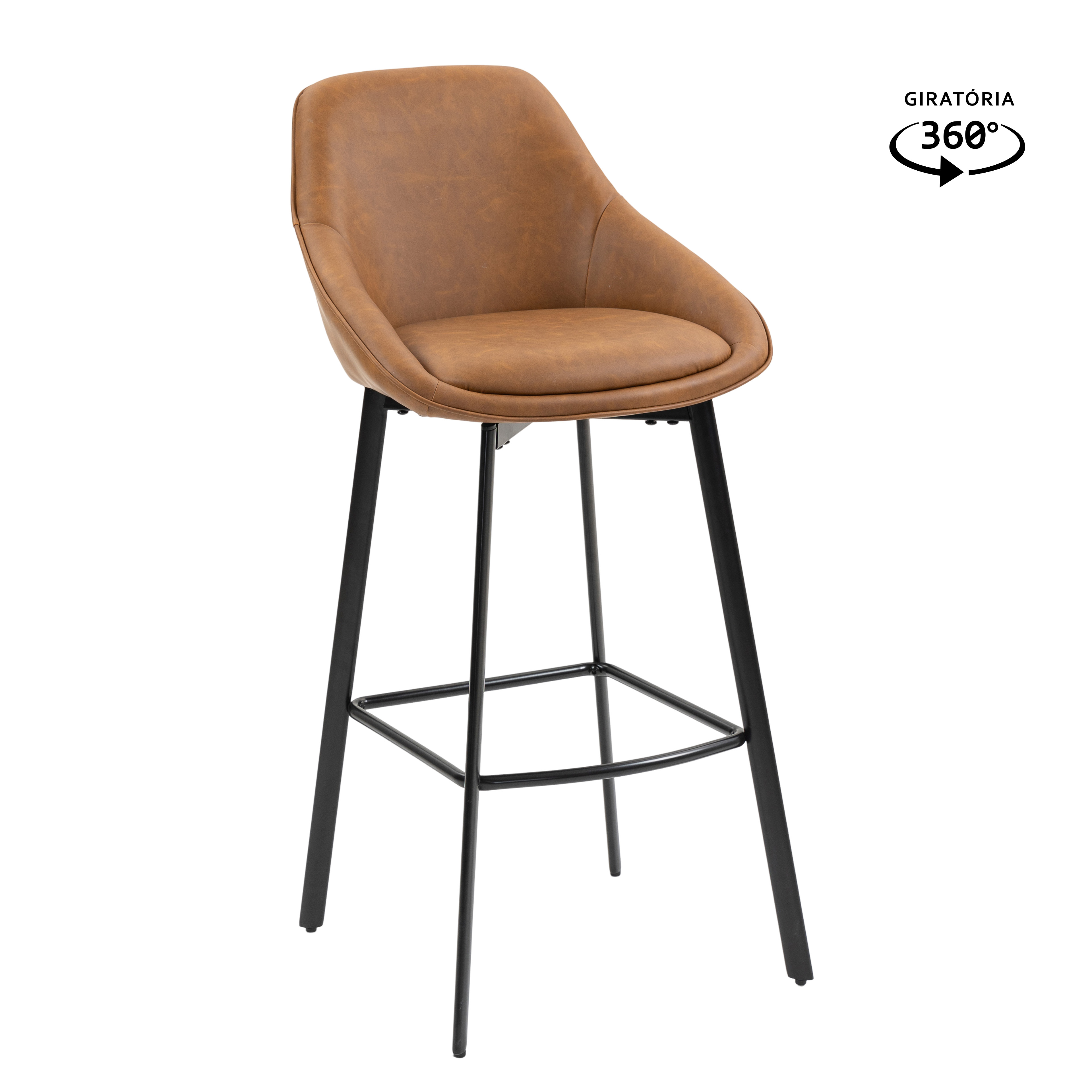 BANQUETA GIRATÓRIA ESTOFADA EM POLIURETANO E BASE EM AÇO PINTADA A PÓ