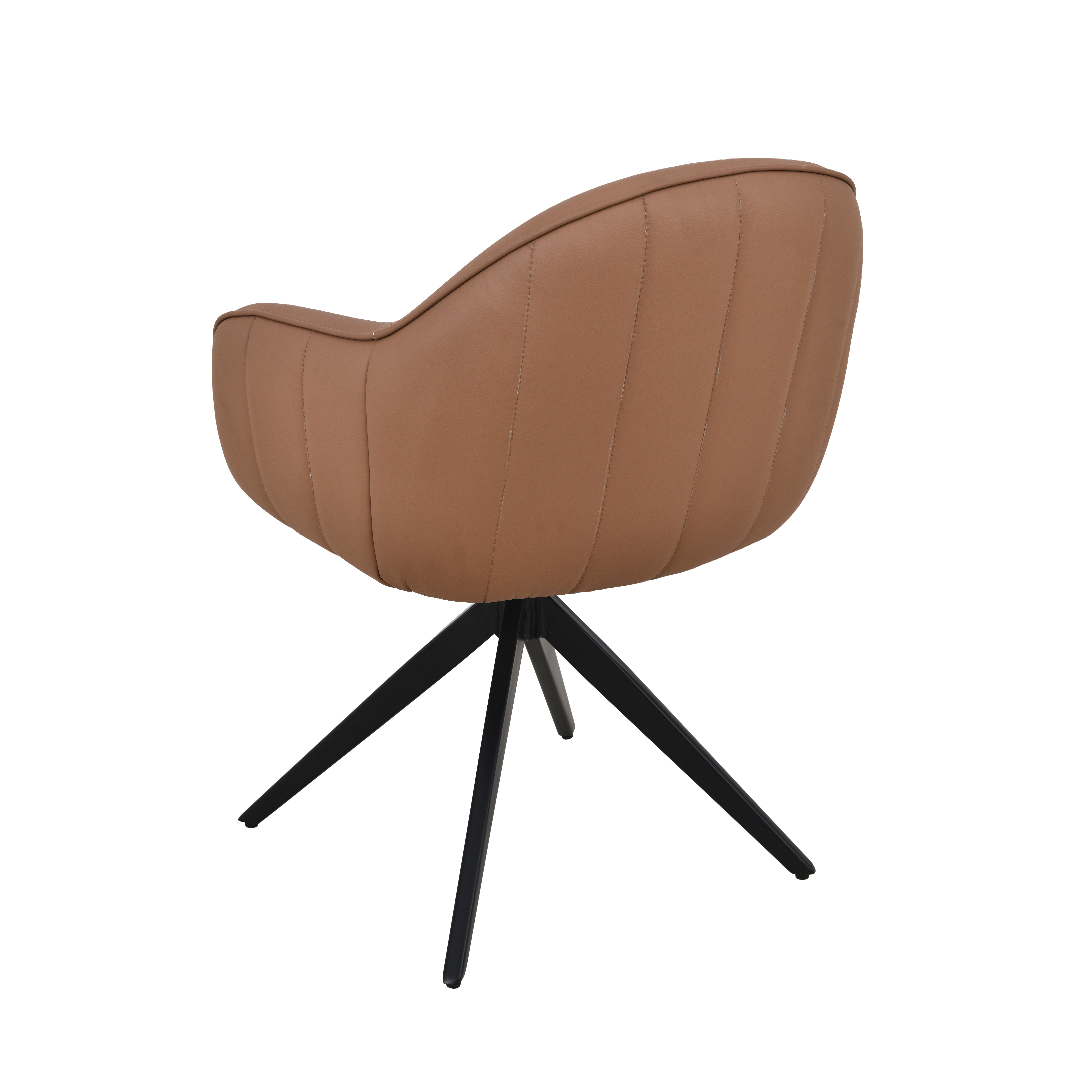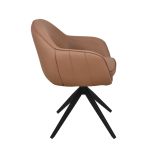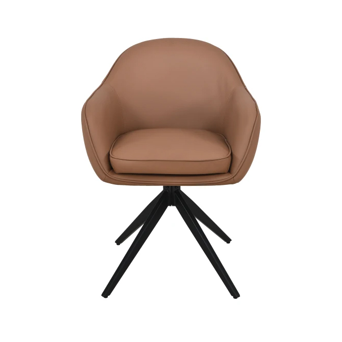 Cadeira giratória estofada em tecido ou poliuretano e base em aço pintada à pó.