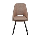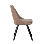 Cadeira estofada em tecido e base em aço pintada à pó.