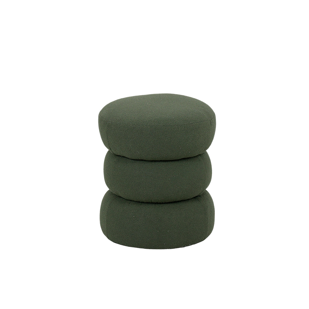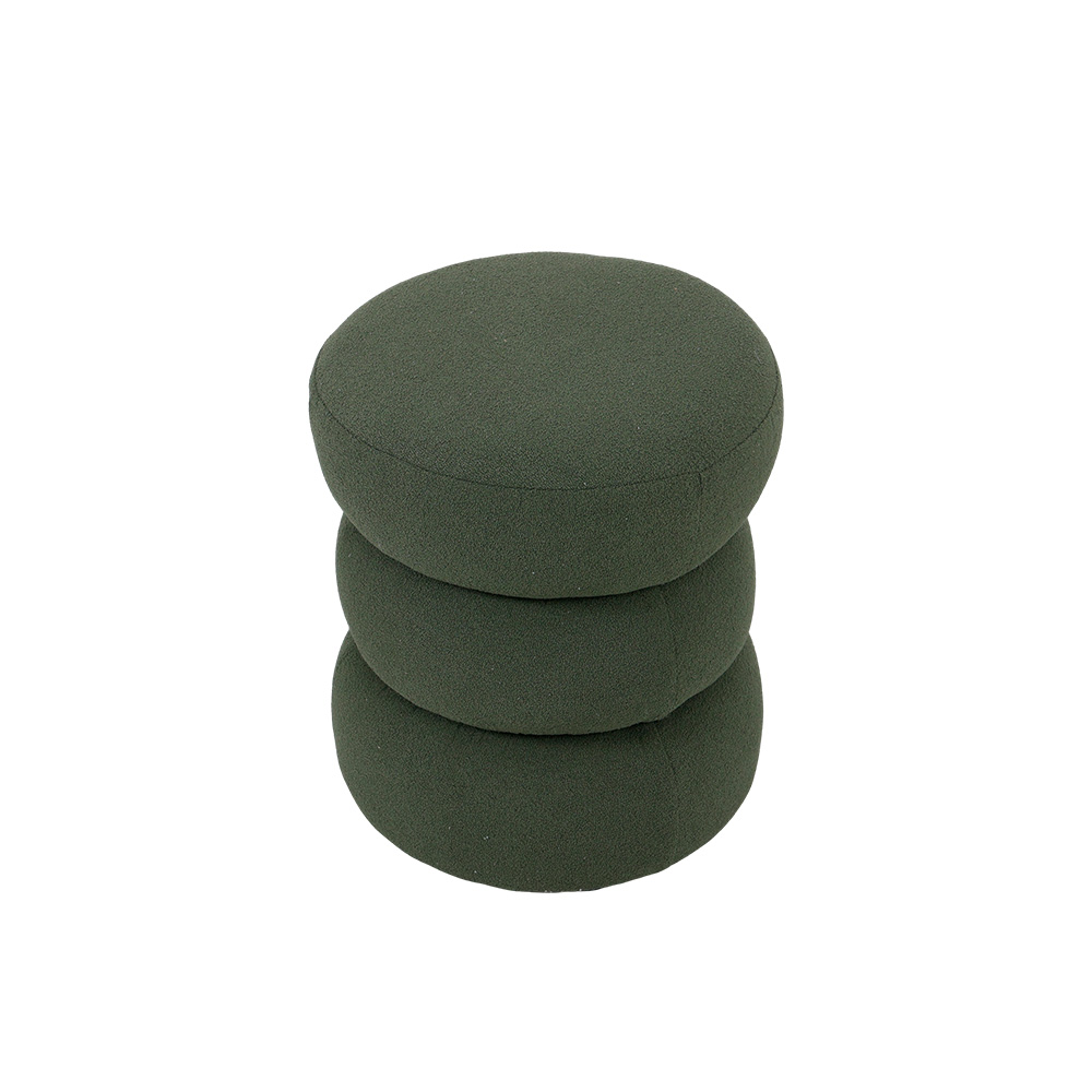 Puff redondo estofado em tecido bouclé.