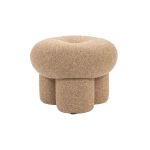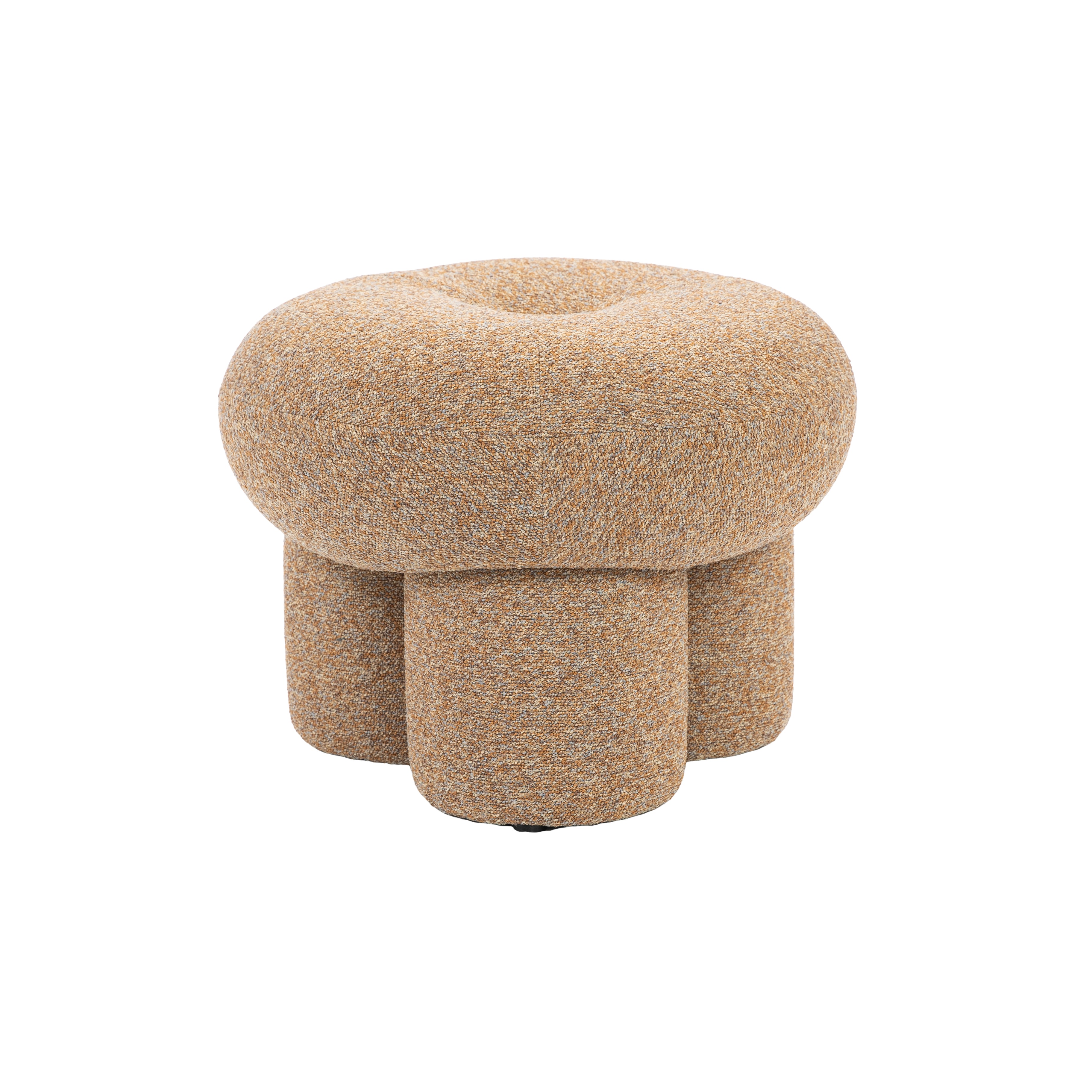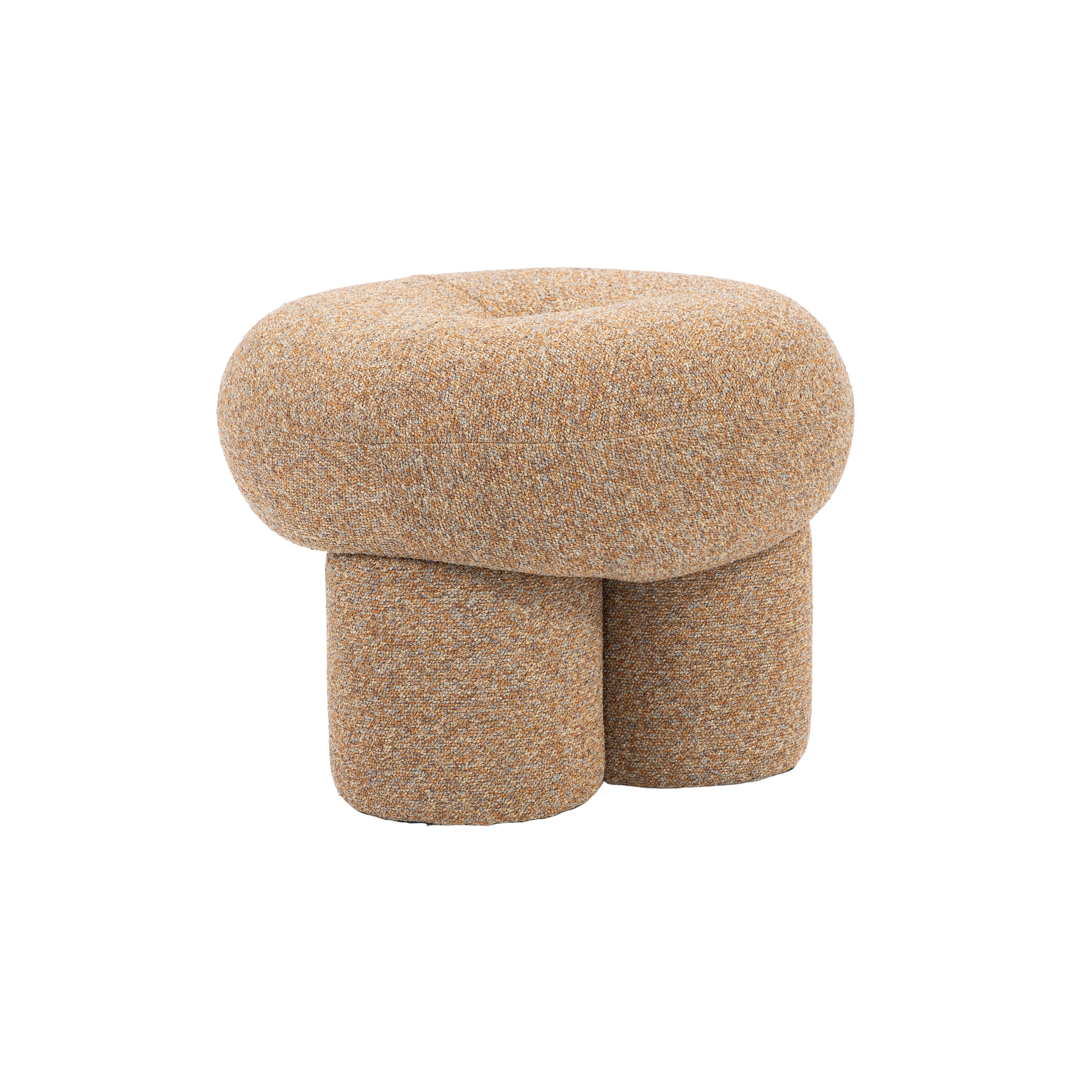 PUFF REDONDO COM 3 PÉS ESTOFADO EM TECIDO.