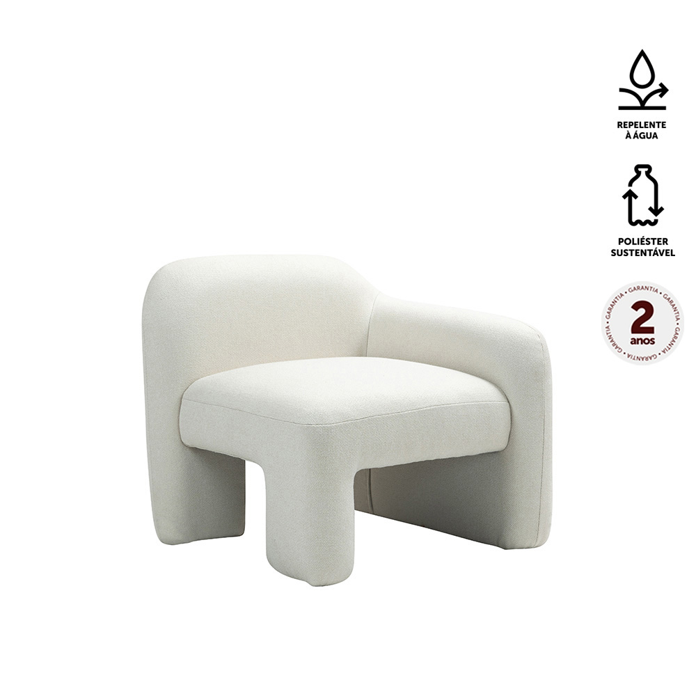 Poltrona estofada em tecido poliéster sustentável e repelente a água. Módulo esquerdo.