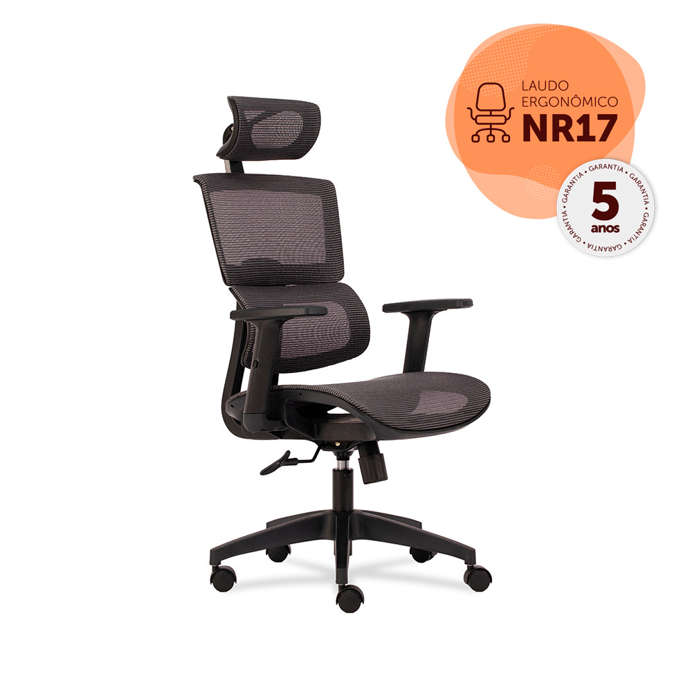 Assento e espaldar em tela mesh. Apoio de lombar ajustável,