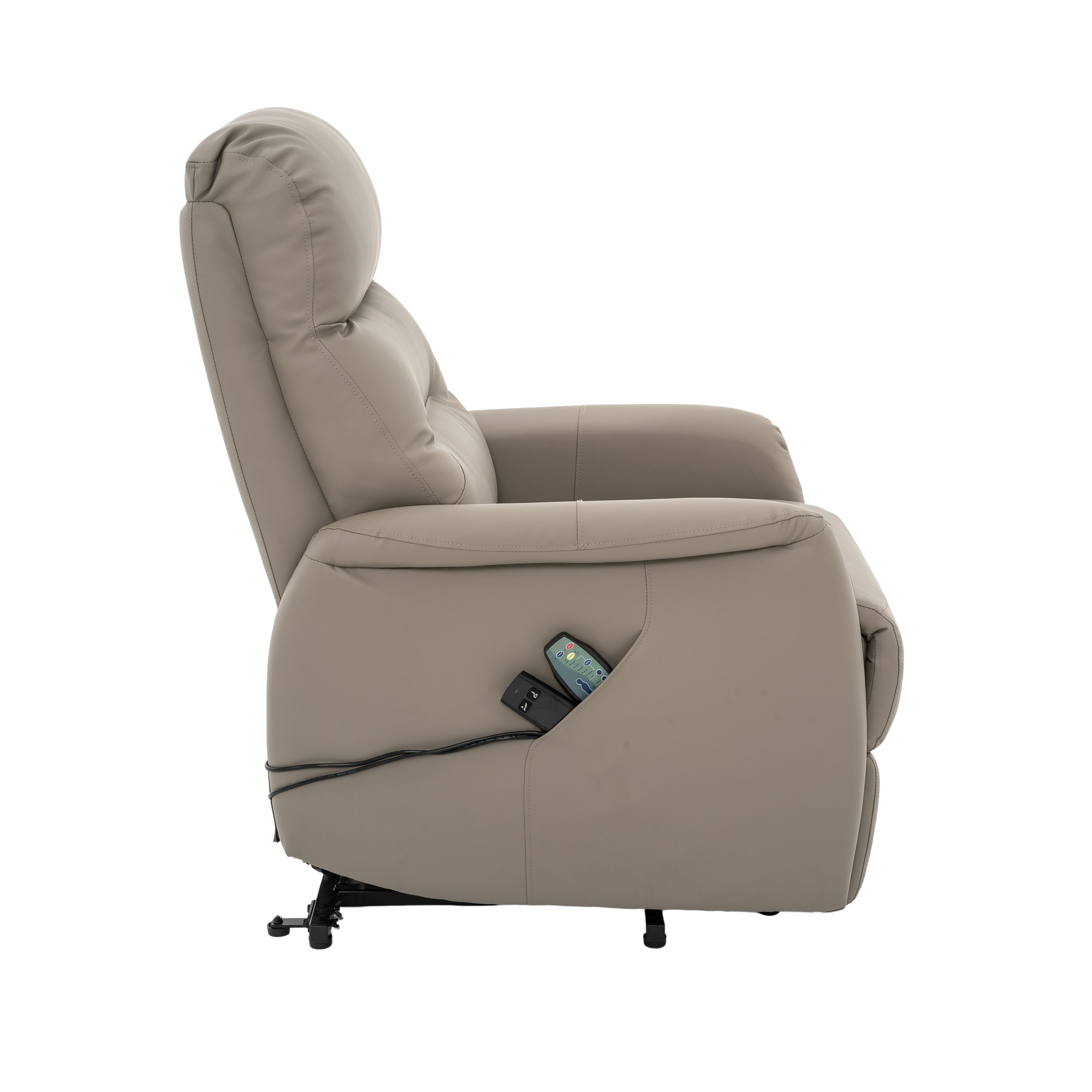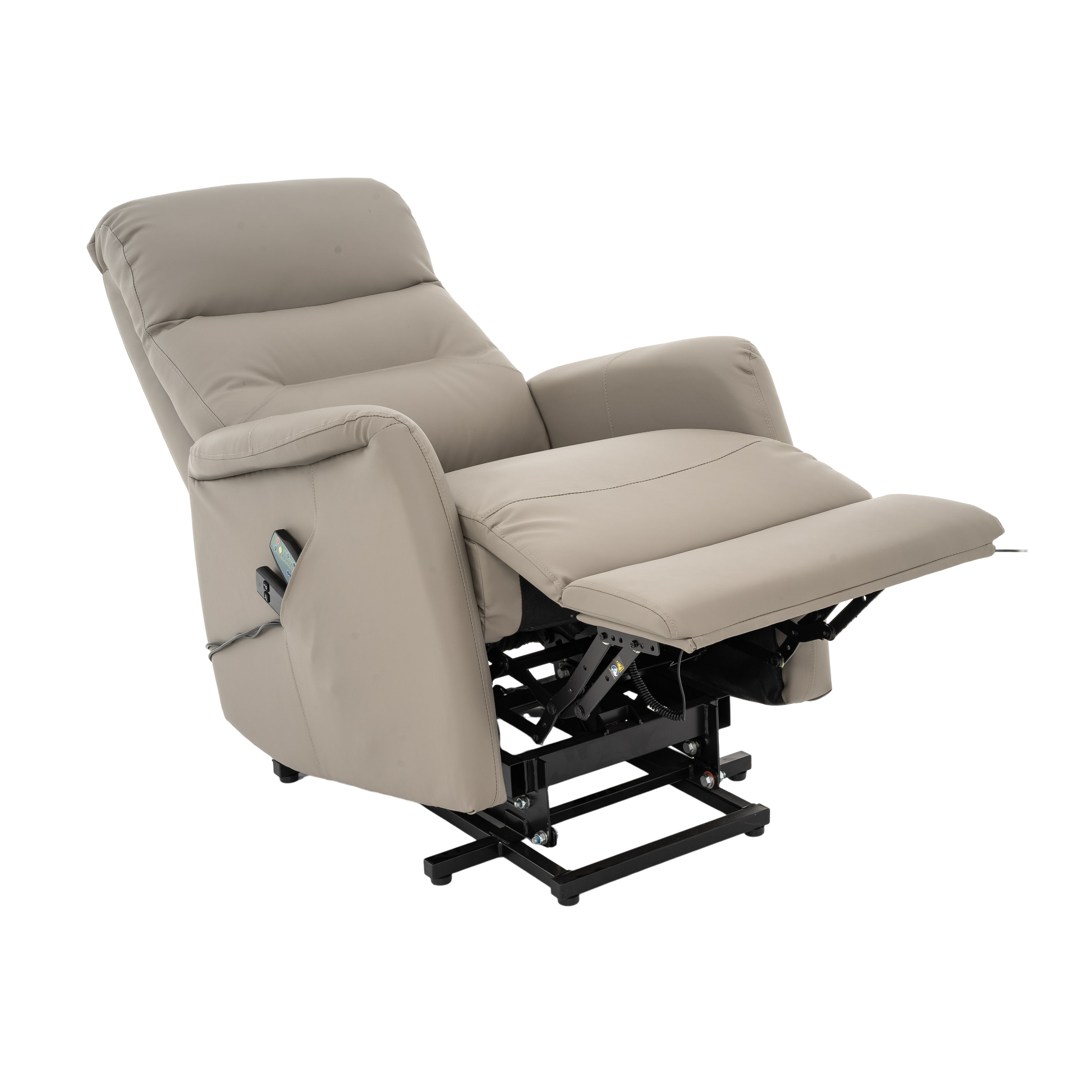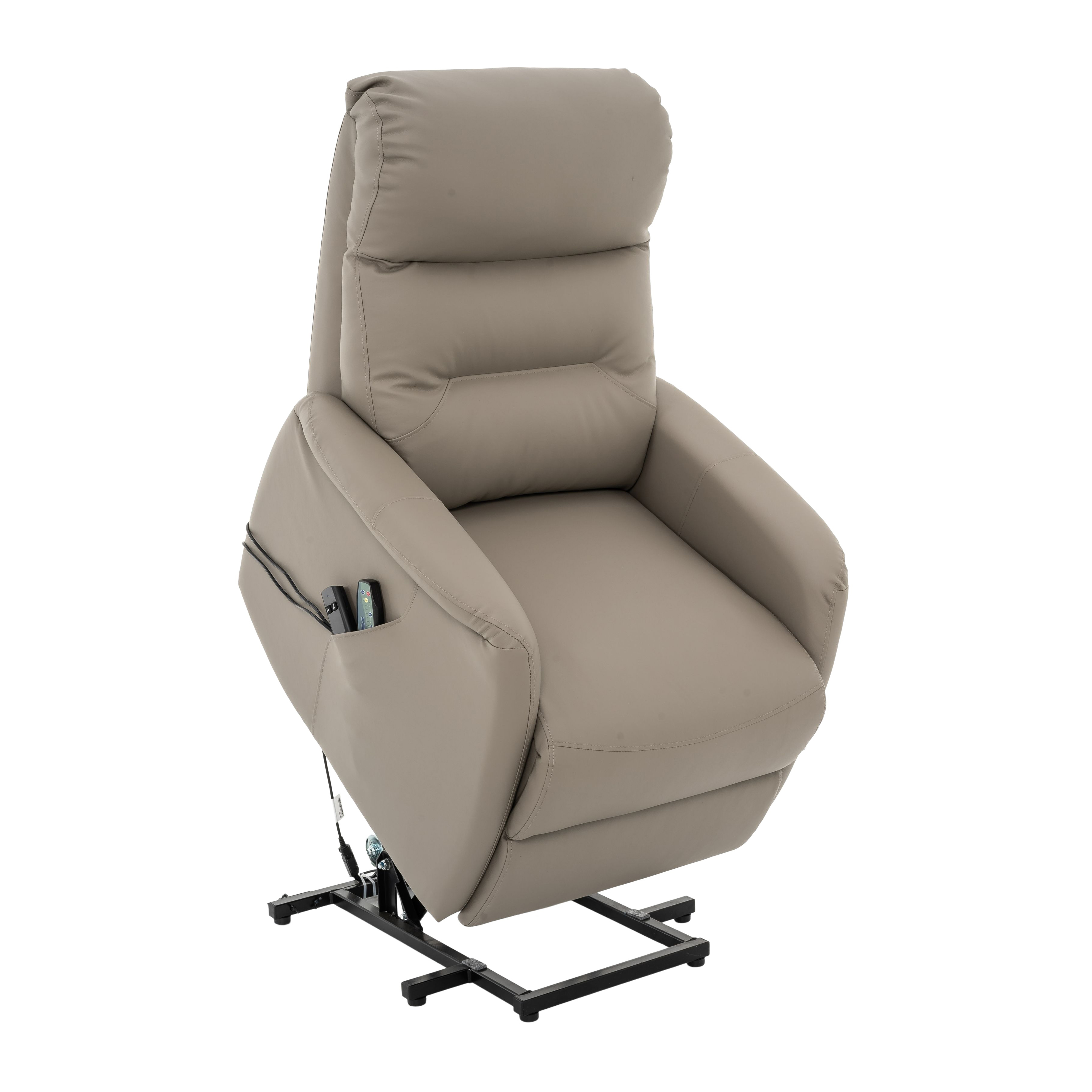 POLTRONA DE MASSAGEM ESTOFADA EM POLIURETANO COM BASE EM AÇO PINTADA A PÓ. POLTRONA COM SISTEMA DE ELEVAÇÃO COM ÂNGULO MÁXIMO DE ELEVAÇÃO DO ENCOSTO DE 35° E COM RECLINAÇÃO DE ATÉ 135°. POSSUI 8 PONTOS DE MASSAGEM COM AQUECIMENTO. REGULAGEM POR CONTROLE BIVOLT. ASSENTO COM MOLAS ENSACADAS.