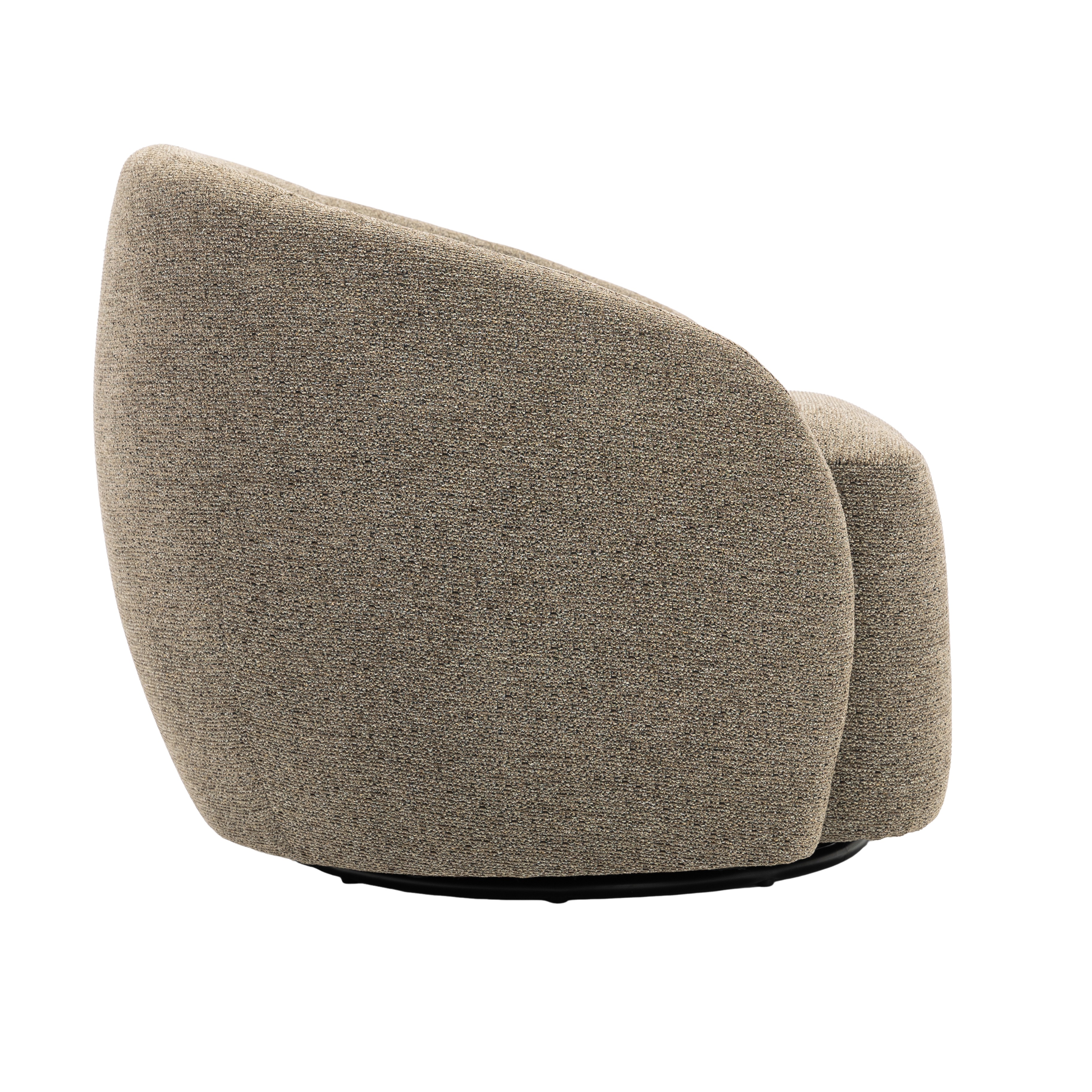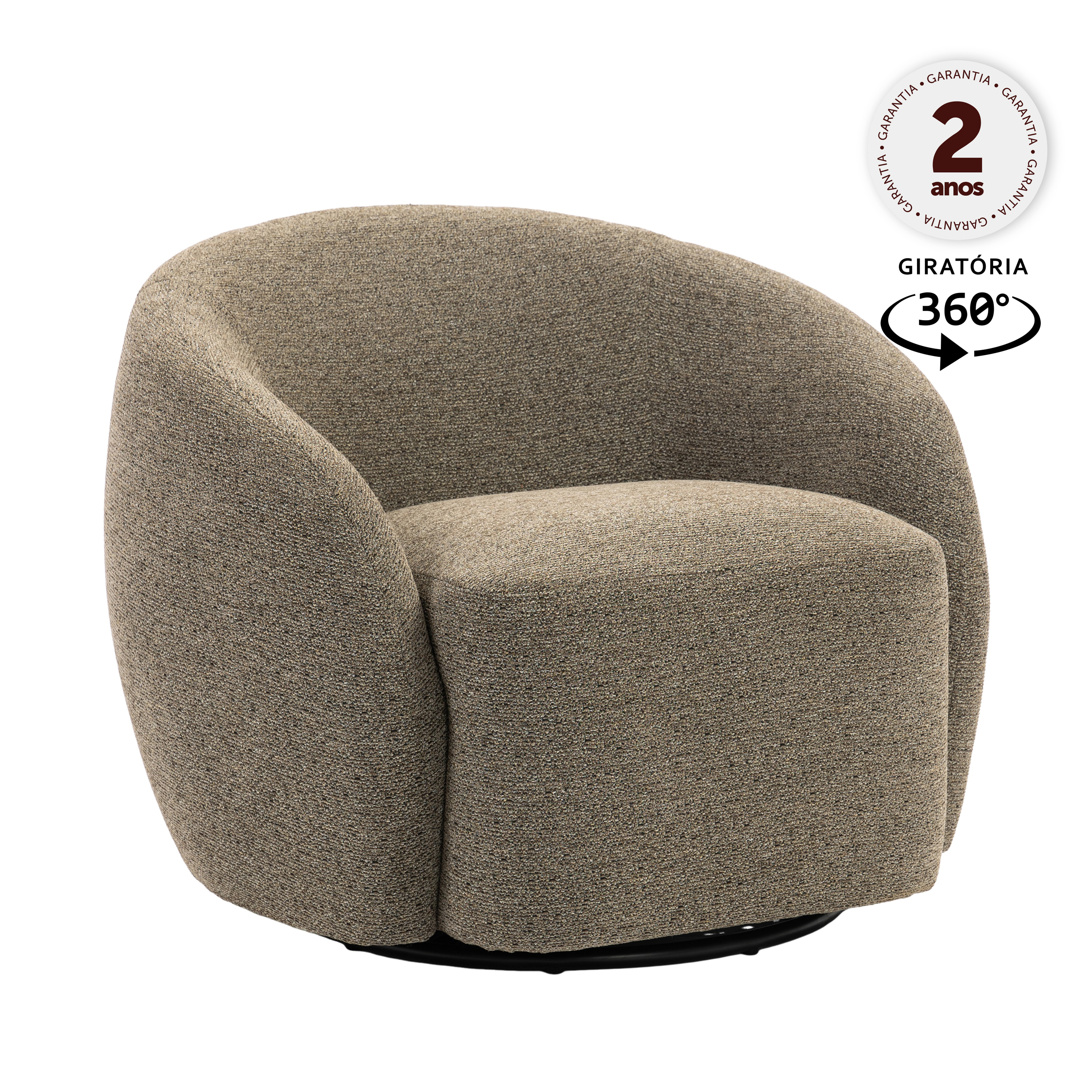 POLTRONA GIRATÓRIA ESTOFADA EM TECIDO E BASE EM AÇO PINTADA A PÓ.