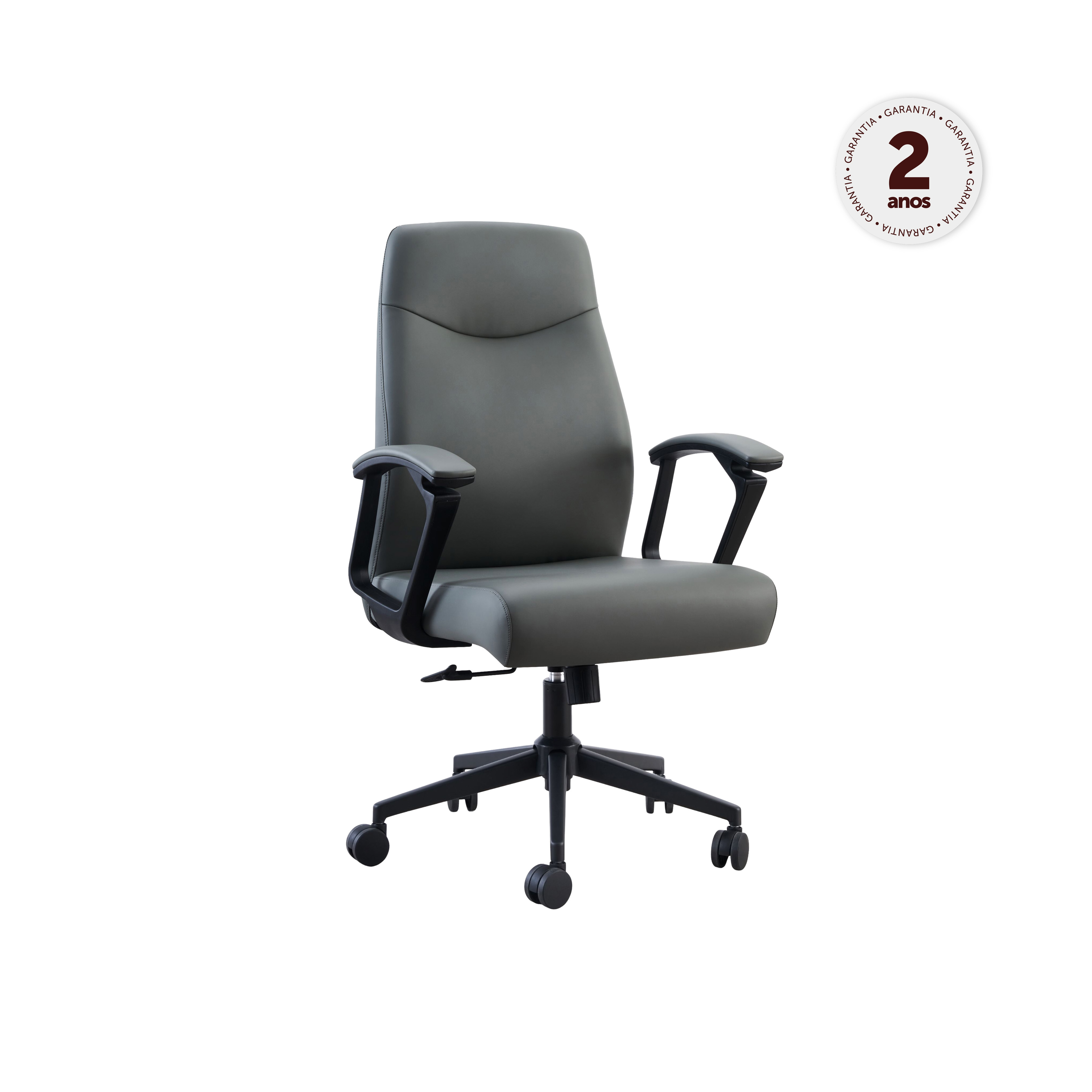 Base estrela em aço pintado à pó e rodízios em nylon.