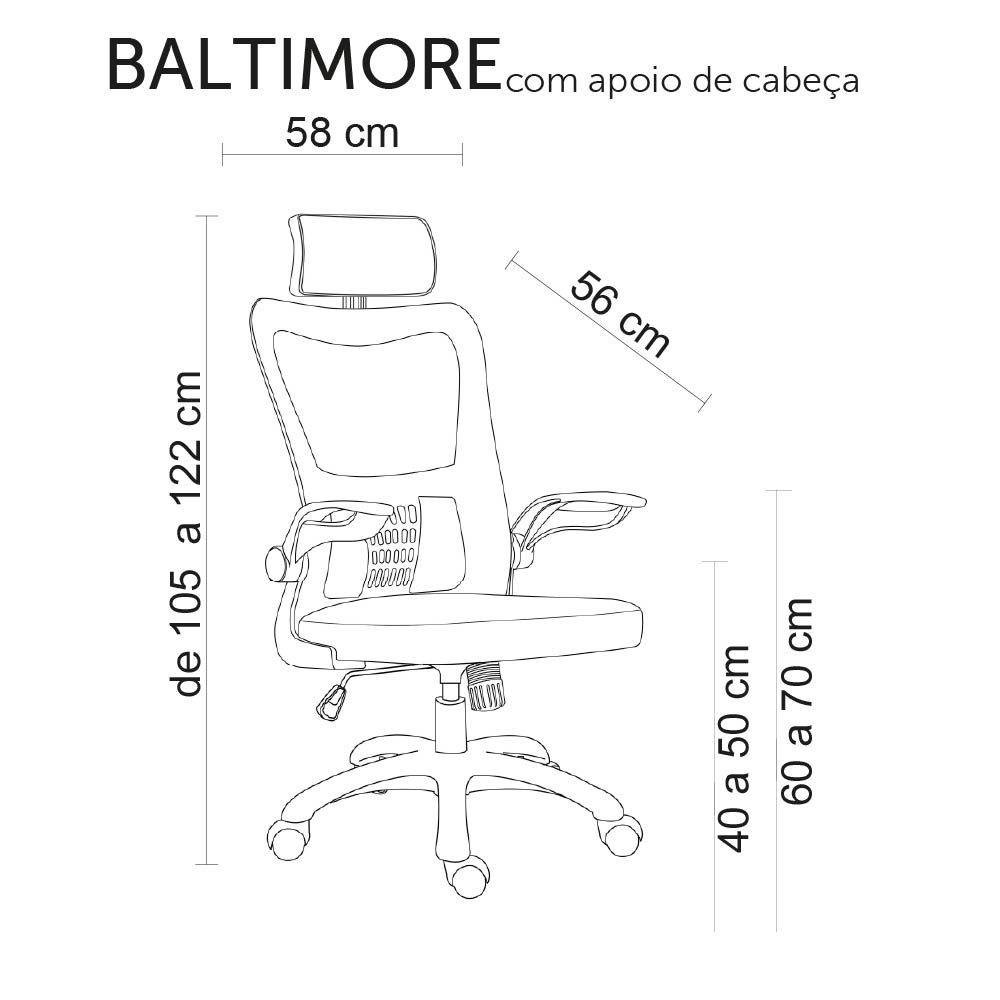 em tela mesh e espaldar em tela mesh. Apoio de lombar