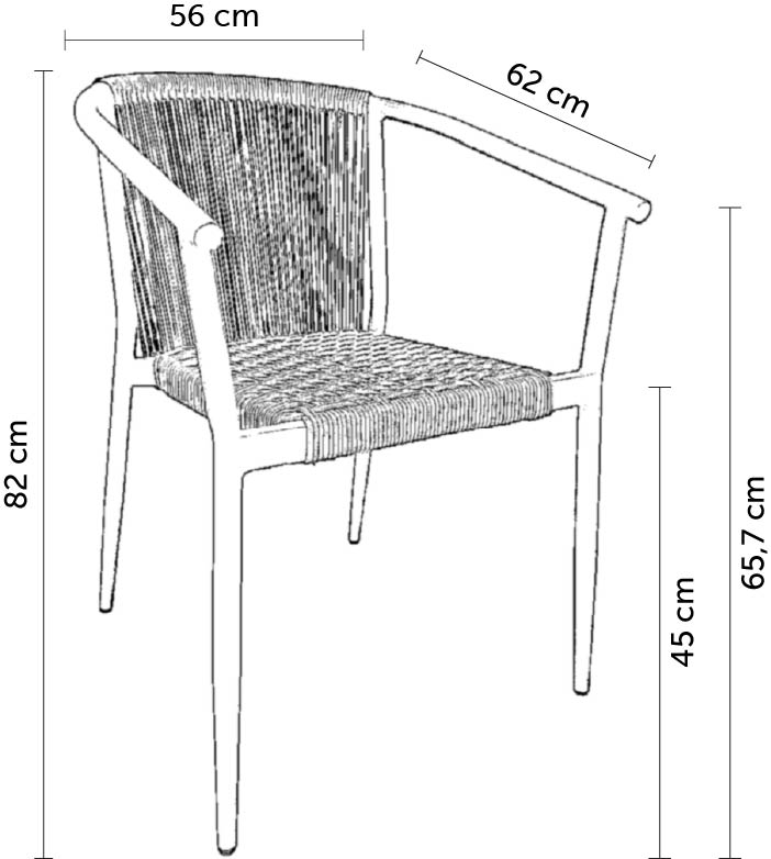 espaldar em trama de corda náutica. Empilhável.