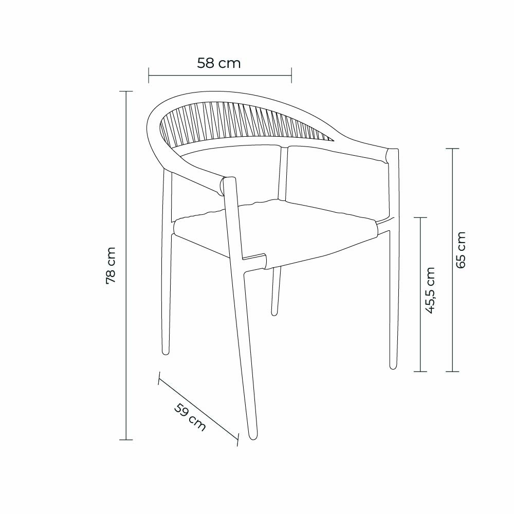 Cadeira para uso externo de alumínio com assento em trama de corda náutica. • Disponível com base Grafite ou Preto. • Empilhável.